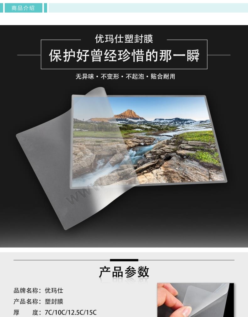 优玛仕 U-mach 塑封膜 7寸 136*188mm 70mic(7丝) 100张/包