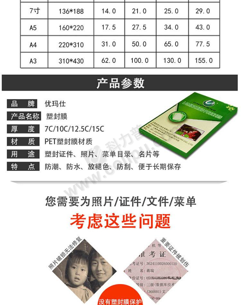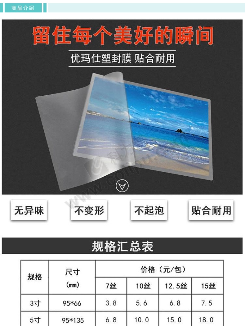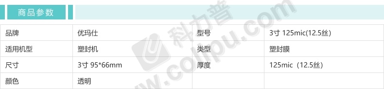 优玛仕 U-mach 塑封膜 3寸 125mic(12.5丝) 95*66mm 100张/包