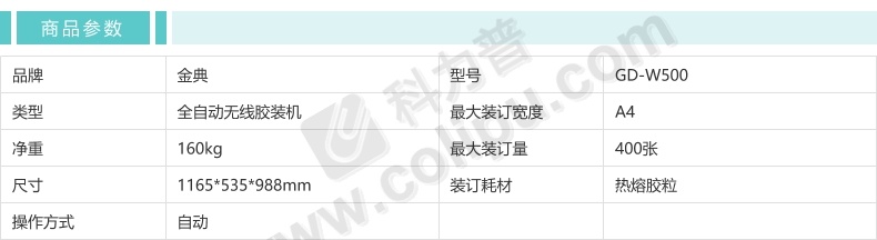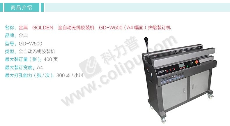 金典 GOLDEN 全自动无线胶装机 GD-W500 (A4幅面) 热熔装订机