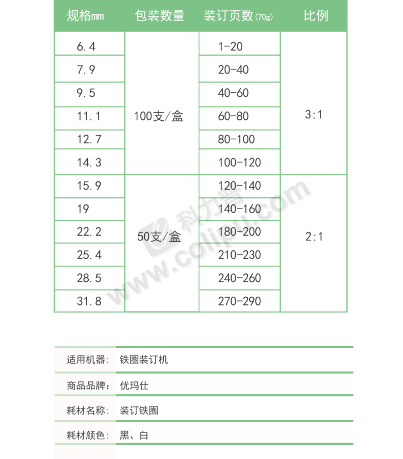优玛仕 U-mach 9.5mm (白色) 34孔装订铁圈 100支/盒