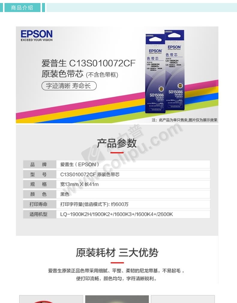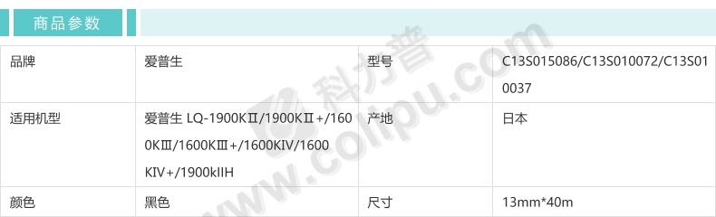 爱普生 EPSON 色带芯 C13S015086/C13S010072/C13S010037 13mmX40m (黑色)