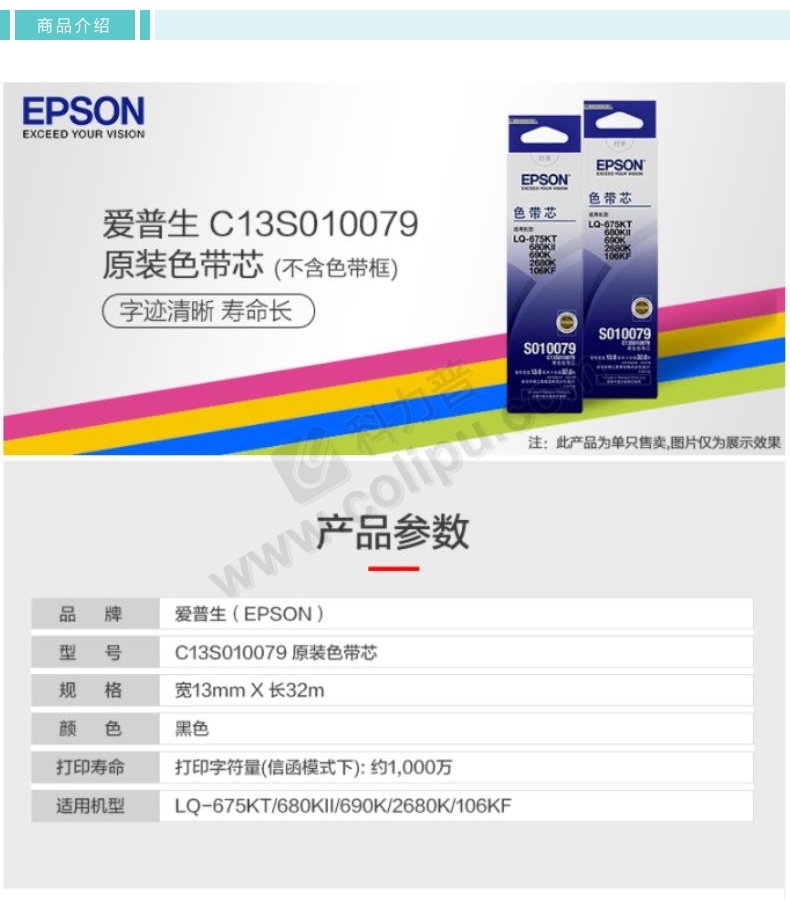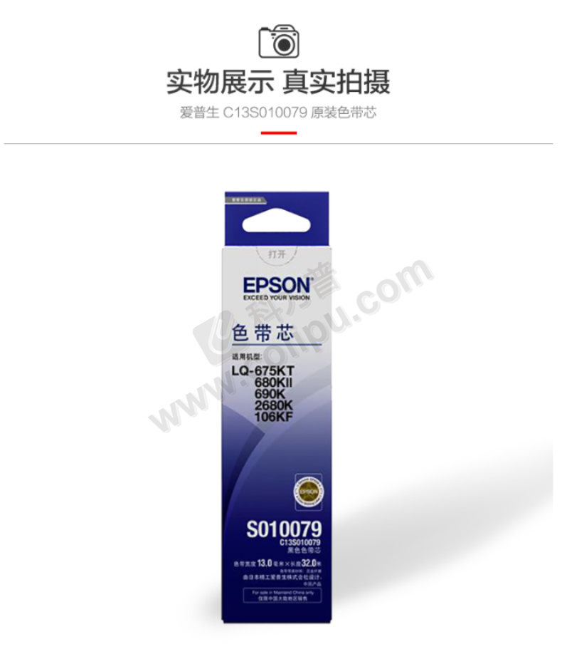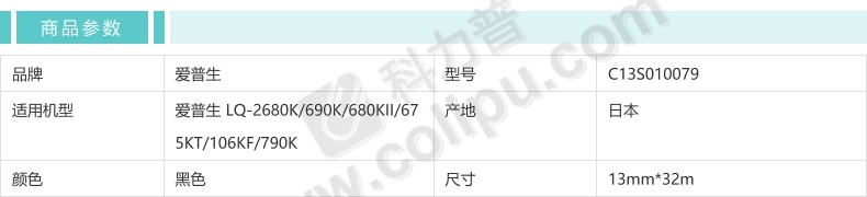 爱普生/EPSON 色带芯 C13S010079 13mm*32m 适用于LQ-2680K/690K/680KII/675KT/106KF/790K 黑色