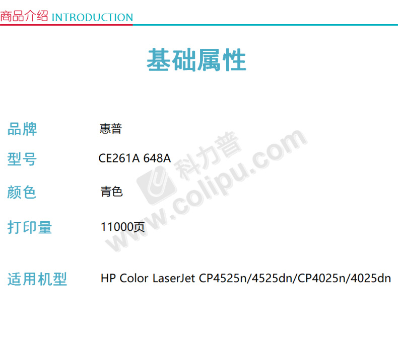 惠普 HP 硒鼓 CE261A 648A (青色)