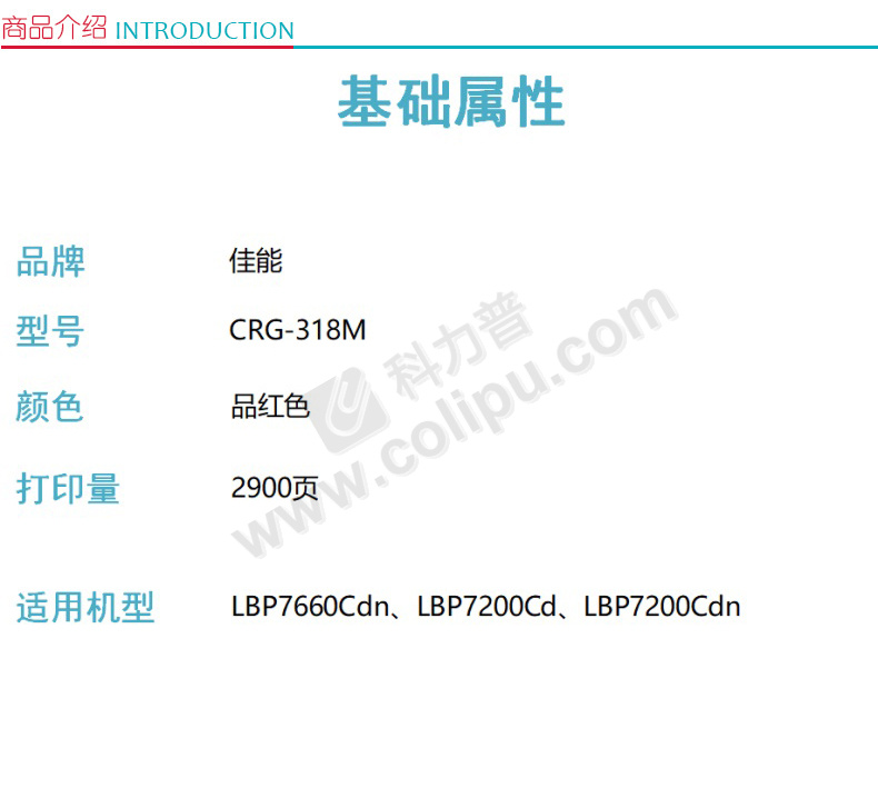 佳能 CANON 硒鼓 CRG-318M 2900页 (品红色)