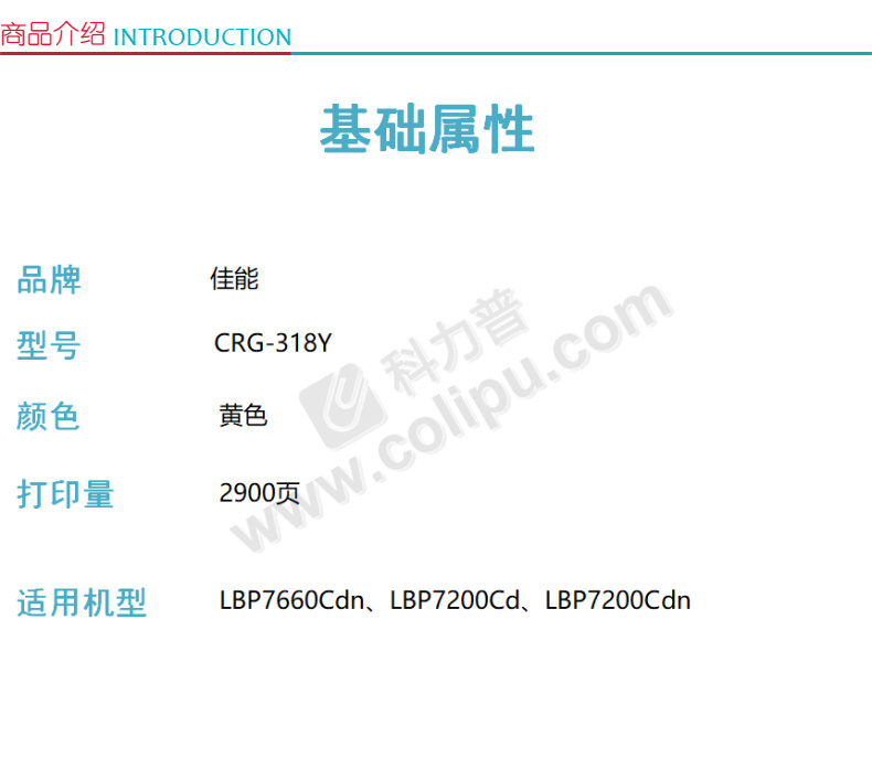 佳能 CANON 硒鼓 CRG-318Y (黄色)
