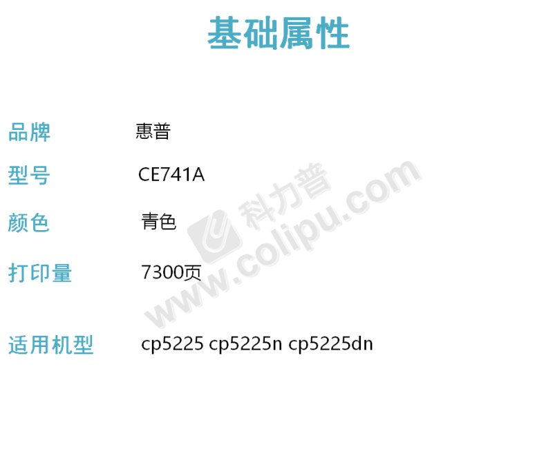 惠普/HP 打印机硒鼓 CE741A/307A 适用于CP5225 CP5225n 5225dn 青色