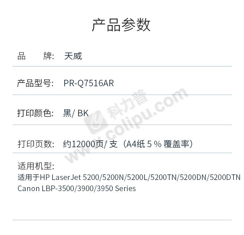 天威 PRINT-RITE 激光碳粉盒 PR-Q7516AR TFH173BPEJ 12000页 (黑色) 专业装 带芯片