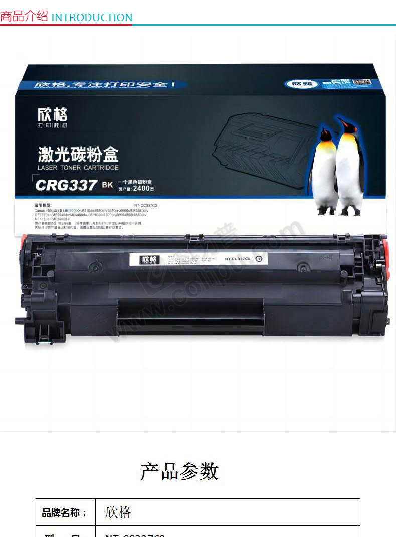欣格 激光碳粉盒 NT-CC337CS CRG337 2400页 (黑色) 经典版 鼓粉一体
