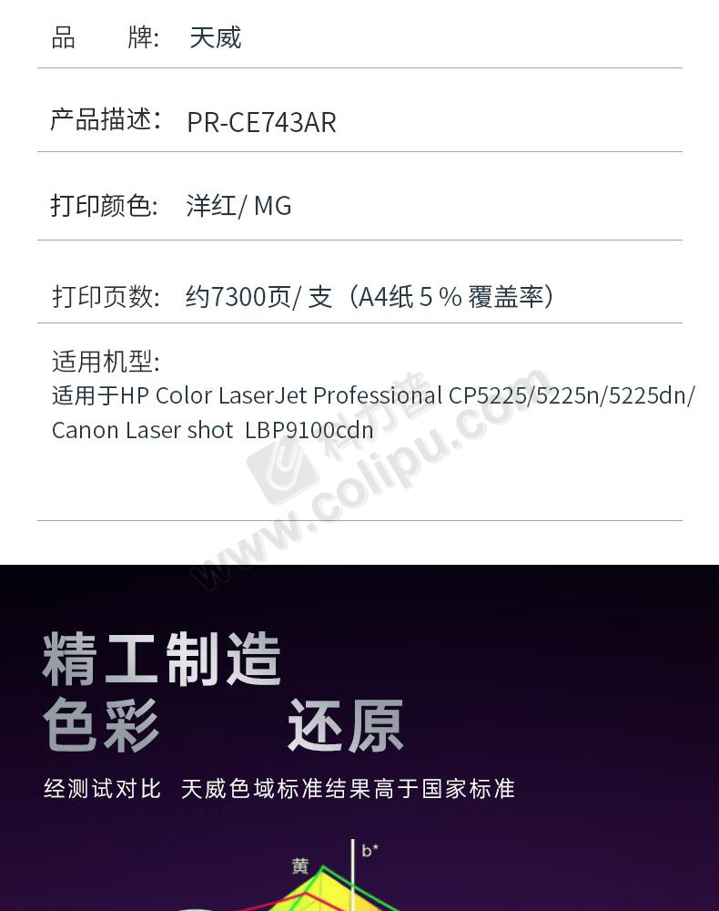 天威 PRINT-RITE 激光碳粉盒 PR-CE743AR TRH600MPEJ 7300页 (红色) 专业装 带芯片