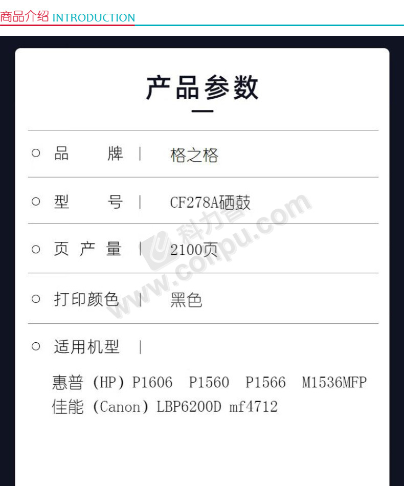 格之格 硒鼓 NT-C0278C 商用专业版 95g 5%覆盖率打印2100页 黑色