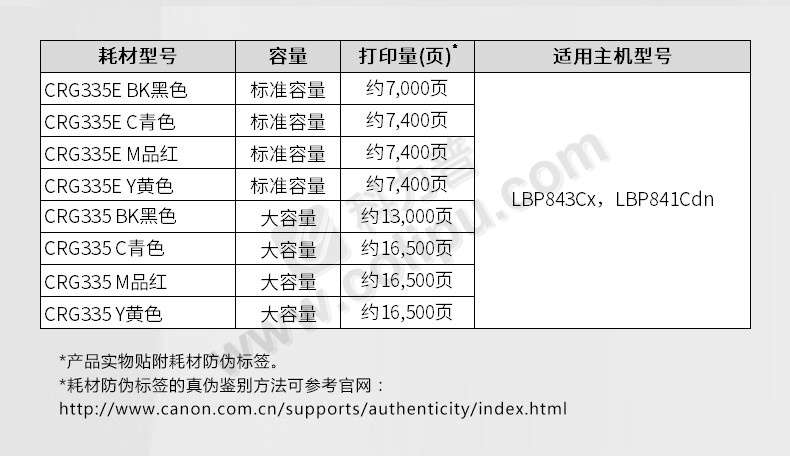 佳能 CANON 硒鼓 CRG-335e C 7400页 (青色)