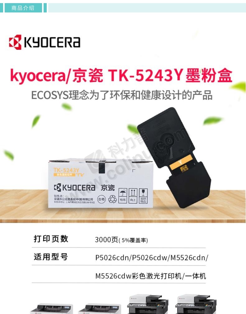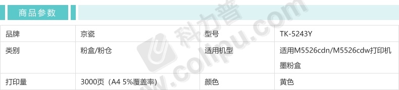 京瓷 Kyocera 墨粉 TK-5243Y 3000页 (黄色)