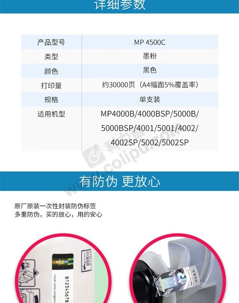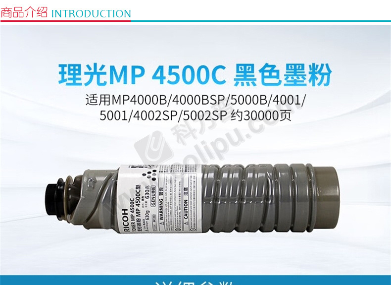 理光 RICOH 复印机墨粉 MP4500C 30000页 (黑色) 适用于黑白激光打印机MP4000/4001/5001/4002/5002